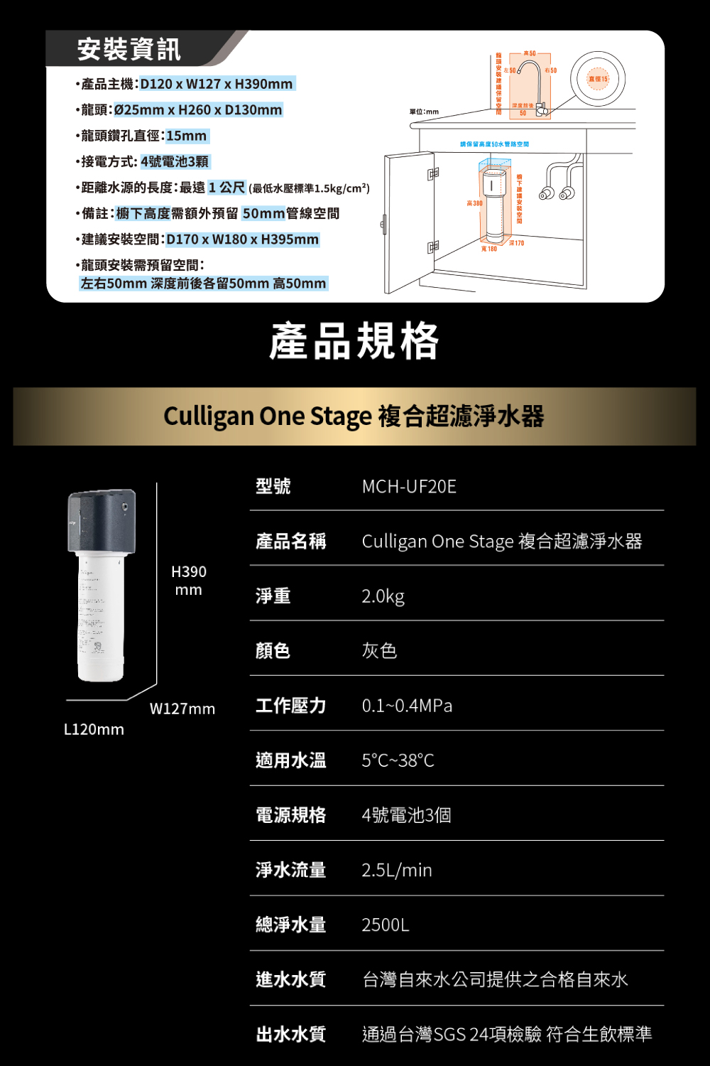 品名:Culligan康麗根MCH-UF20E超濾淨水器