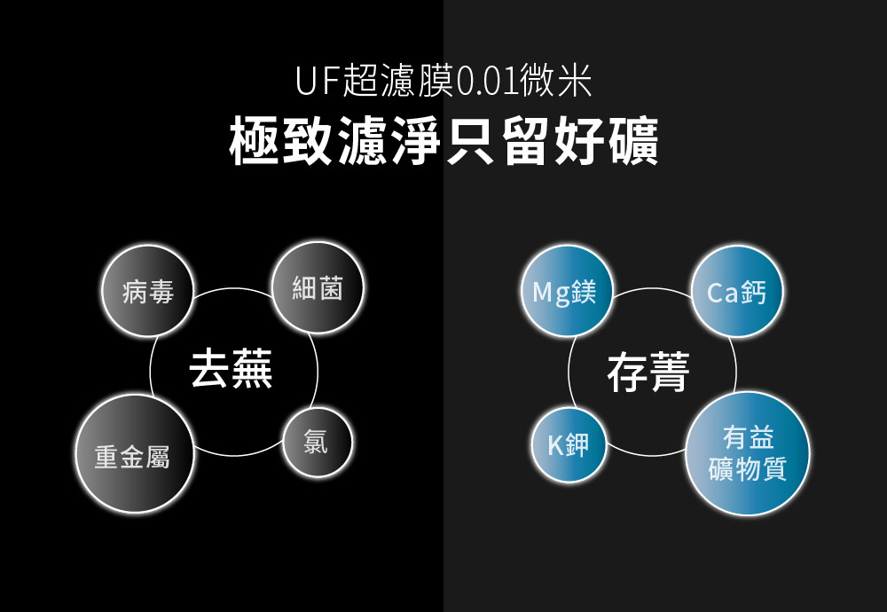 過濾程序:PP+活性碳+0.01微米中空絲膜